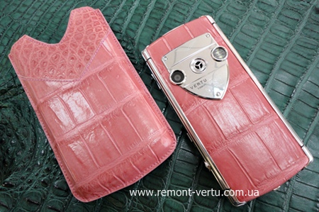 набор чехол и телефон VERTU CONSTELLATION T в коже розового крокодила